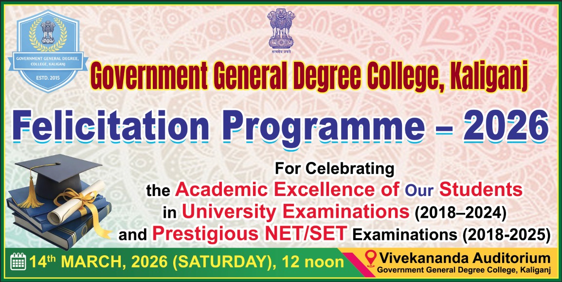 The Department of Sanskrit of Kaliganj Government College opened with Honours and Programme Course in the year 2015 under recognition of Kalyani University.